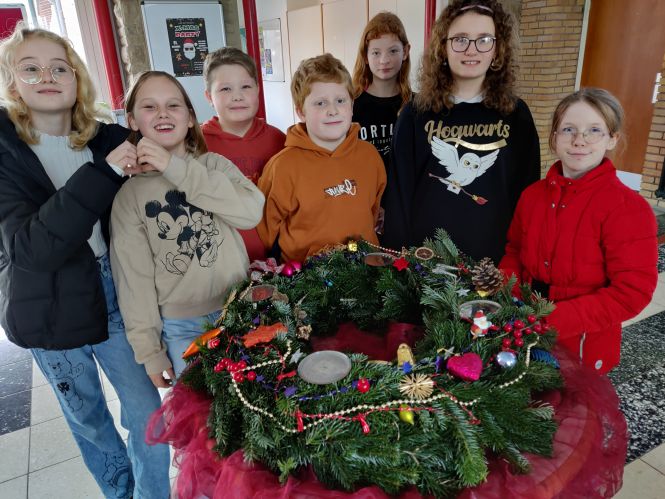 Unsere 5er dekorieren den Schuladventskranz
