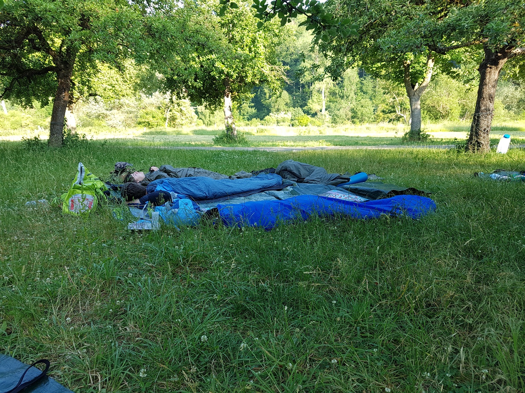 03:30 Uhr: Das Eselsburger Tal liegt ruhig und verlassen da, nur die Grillen und Frösche sind zu hören. Doch dann nähern sich Schritte und ein Stimmengewirr ist hörbar. „Da steht ein Bus, wir sind da!“ , hört man eine Stimme durch die Nacht rufen. Die erste Gruppe hat es geschafft und das Ziel ihrer Reise nach gut vier Stunden erreicht. Nun heißt es schnell alles aufbauen und noch zwei oder drei Stunden Schlaf genießen, bevor es weitergeht.
