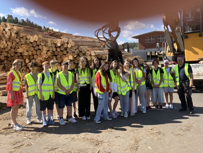 Kasse 7a der Parkschule besichtigt Hirschbach Holz