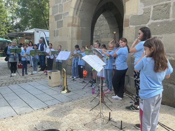 Die Bläserklasse der Parkschule gibt ein Platzkonzert