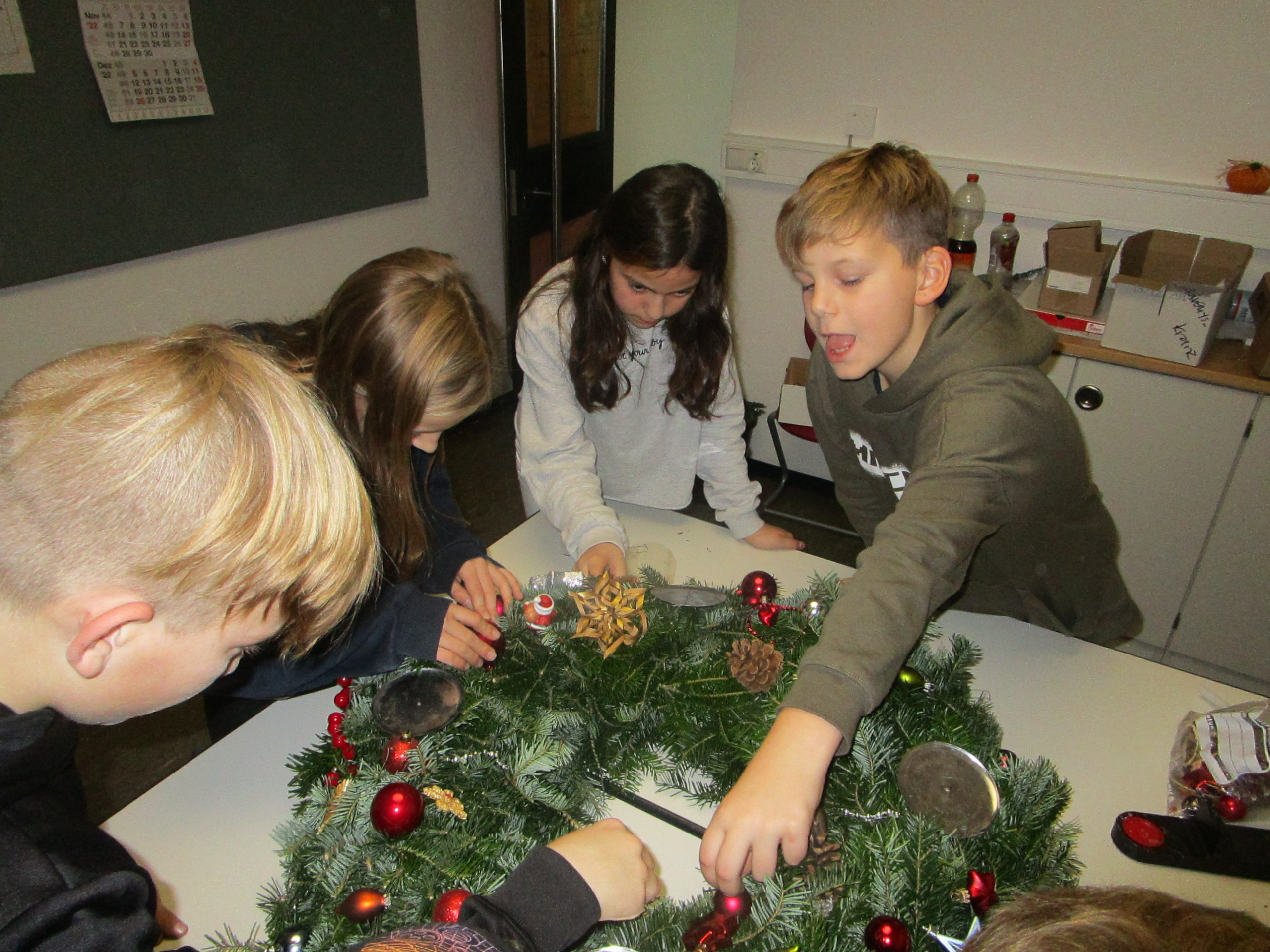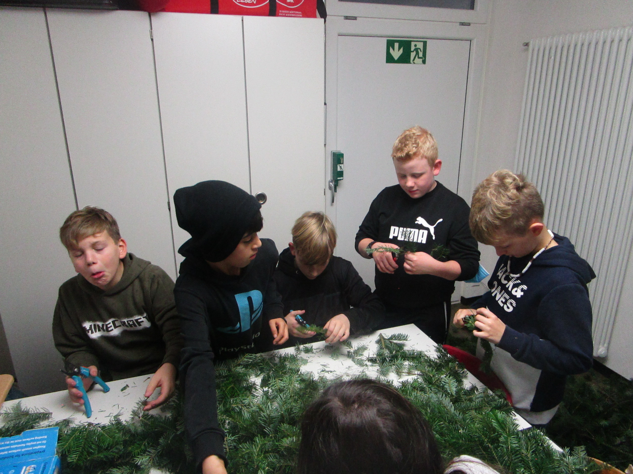 Am Donnerstag 24.11.2022 durften einige Schüler der fünften Klassen den Adventskranz der Parkschule binden und dekorieren. In zwei Schulstunden entstand ein schöner, bunter Kranz, der im Advent die Parkschule schmücken wird. Stolz präsentierten die Schüler ihr fertiges Werk.