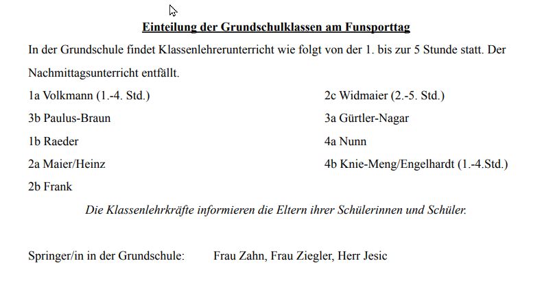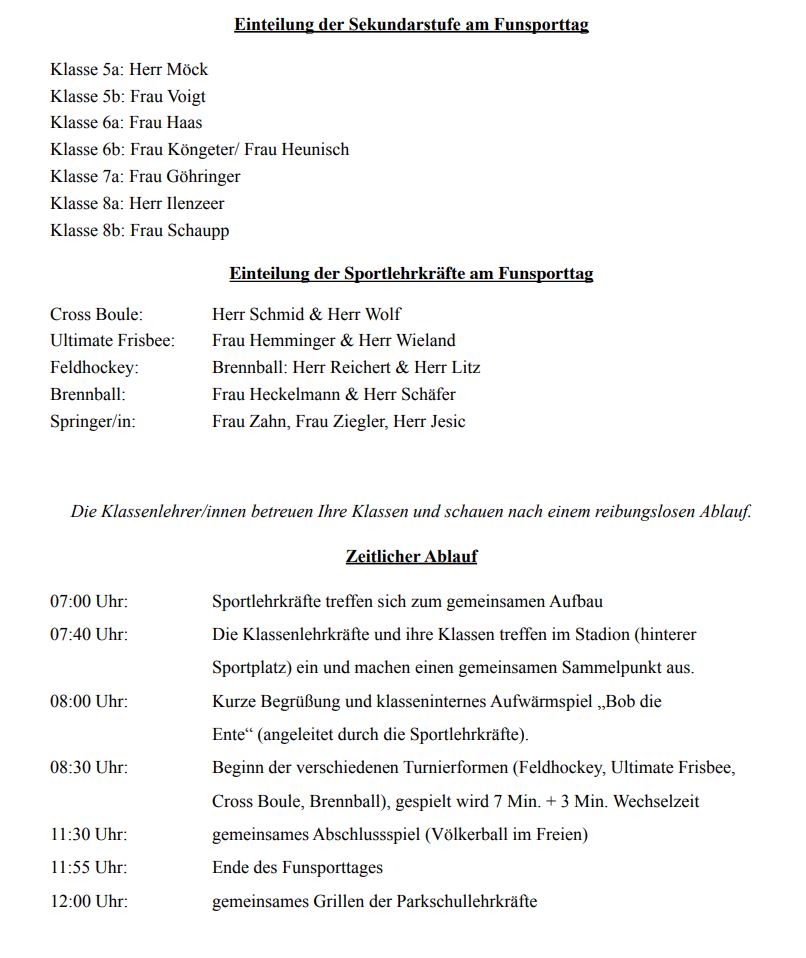 Am Mittwoch den 19.07. findet der Funsporttag für die Werkrealschüler statt - Informationen