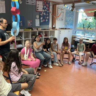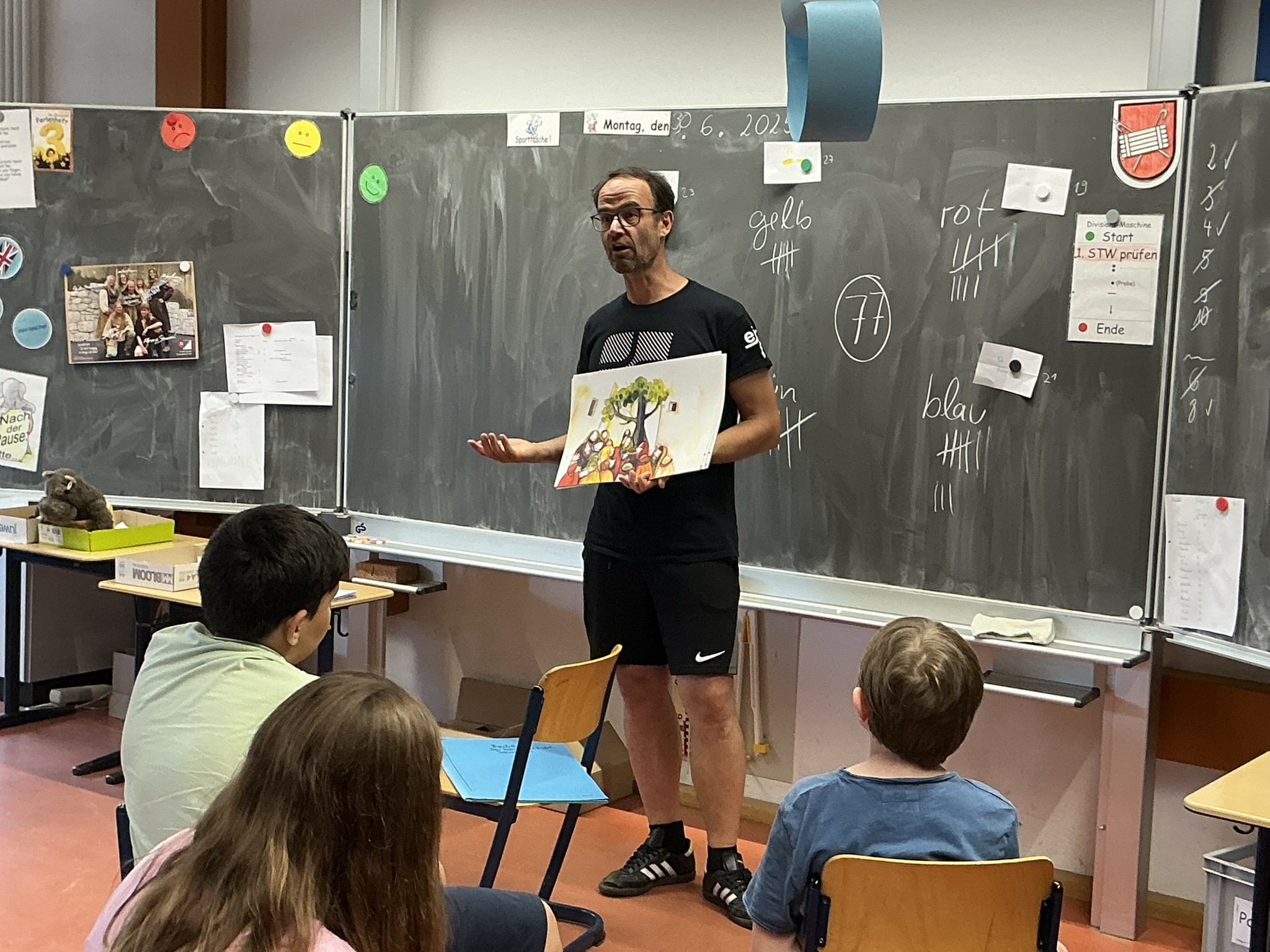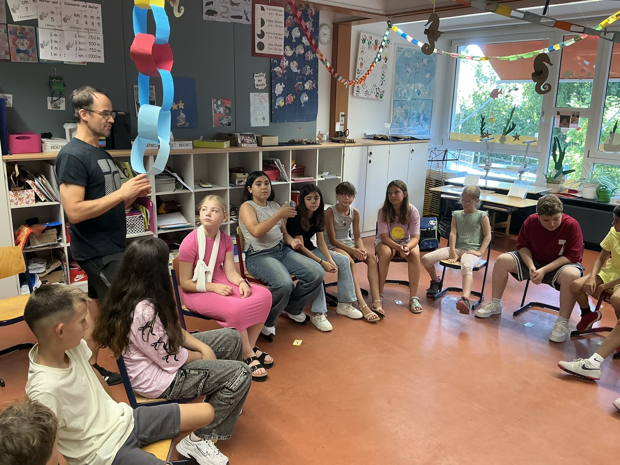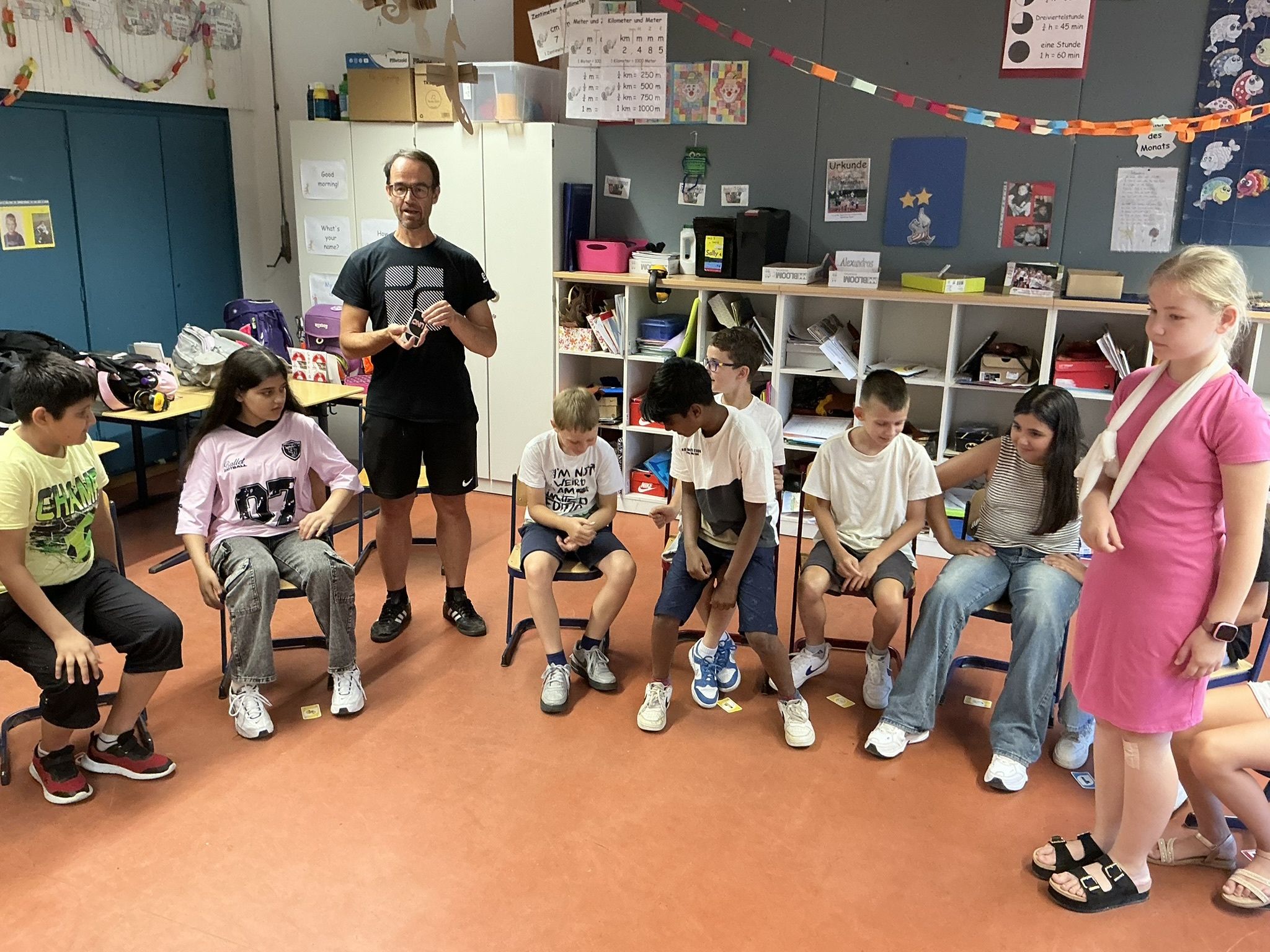 Am Montag, dem 30.06.2025 besuchte Simon Schreiber vom Evangelischen Jugendwerk Gaildorf (EJW) die 4. Klassen der Parkschule. In jeweils 90 Minuten stellte er den Schülerinnen und Schülern die Arbeit mit Jugendlichen des EJW im Rahmen einer Jungscharstunde vor. Von den interessanten Spielen mit viel Action und den schwungvollen Liedern ließen sich die Kinder auch sofort begeistern. Simon Schreiber gelang es überdies, die Kinder mit der spannenden, biblischen Geschichte vom Zöllner Zachäus zu fesseln. Dieses attraktive Programm war eine gelungene Einladung für alle interessierten Kinder an den Angeboten des EJW Gaildorf teilzunehmen. Zum Abschluss meinte Emilia dann auch: „Die Schule war heute richtig toll, doch am allerbesten hat mir das Spiel mit dem Mehlberg und dem herabrollenden Würfel gefallen.“