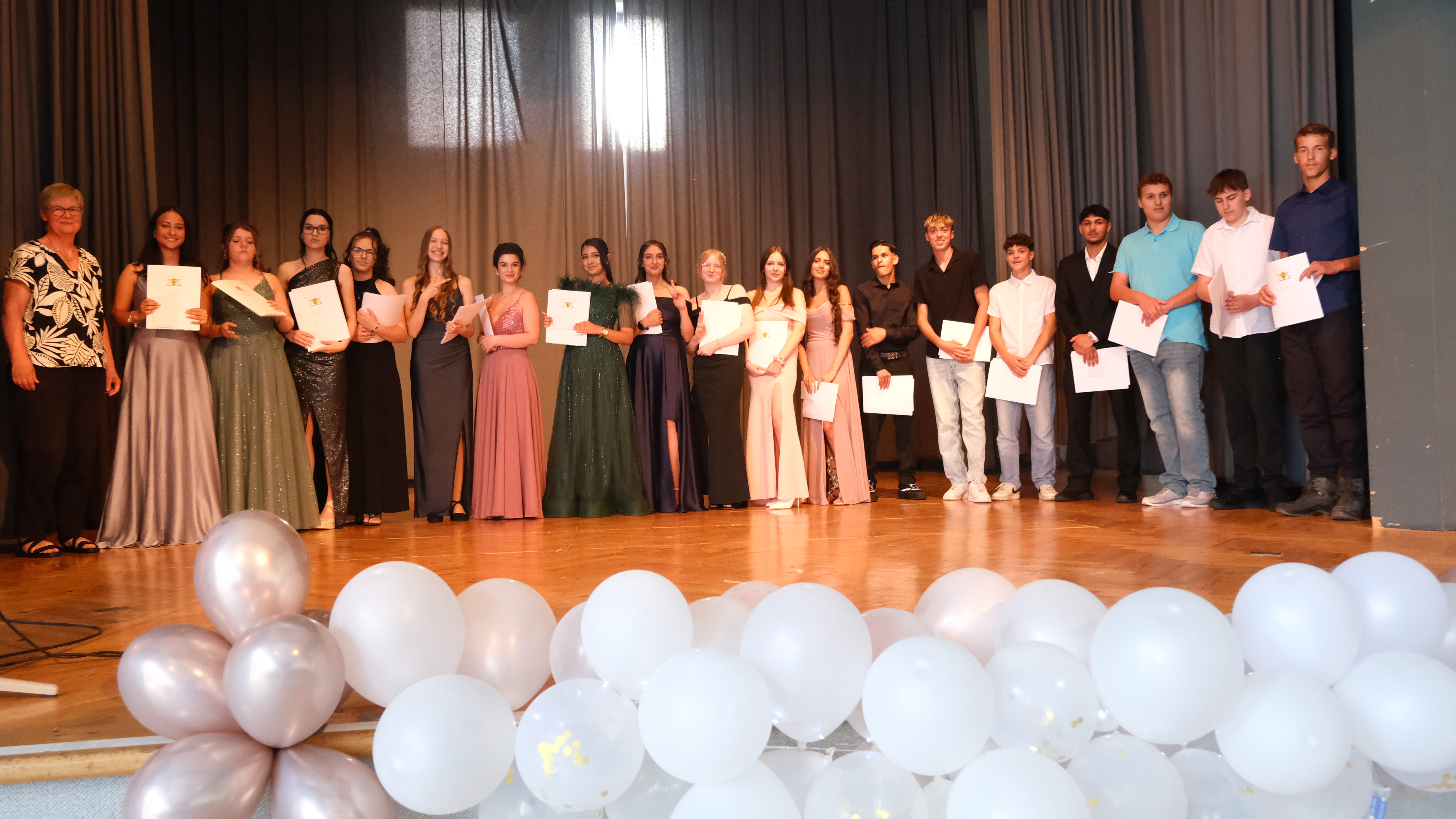 Am Donnerstag, den 17. Juli 2025, fand die Abschlussfeier der Klasse 9 der Parkschule in der festlich geschmückten Limpurghalle statt. Nach dem Sektempfang um 18.00 Uhr begann um 19.00 Uhr der feierliche Teil des Abends.