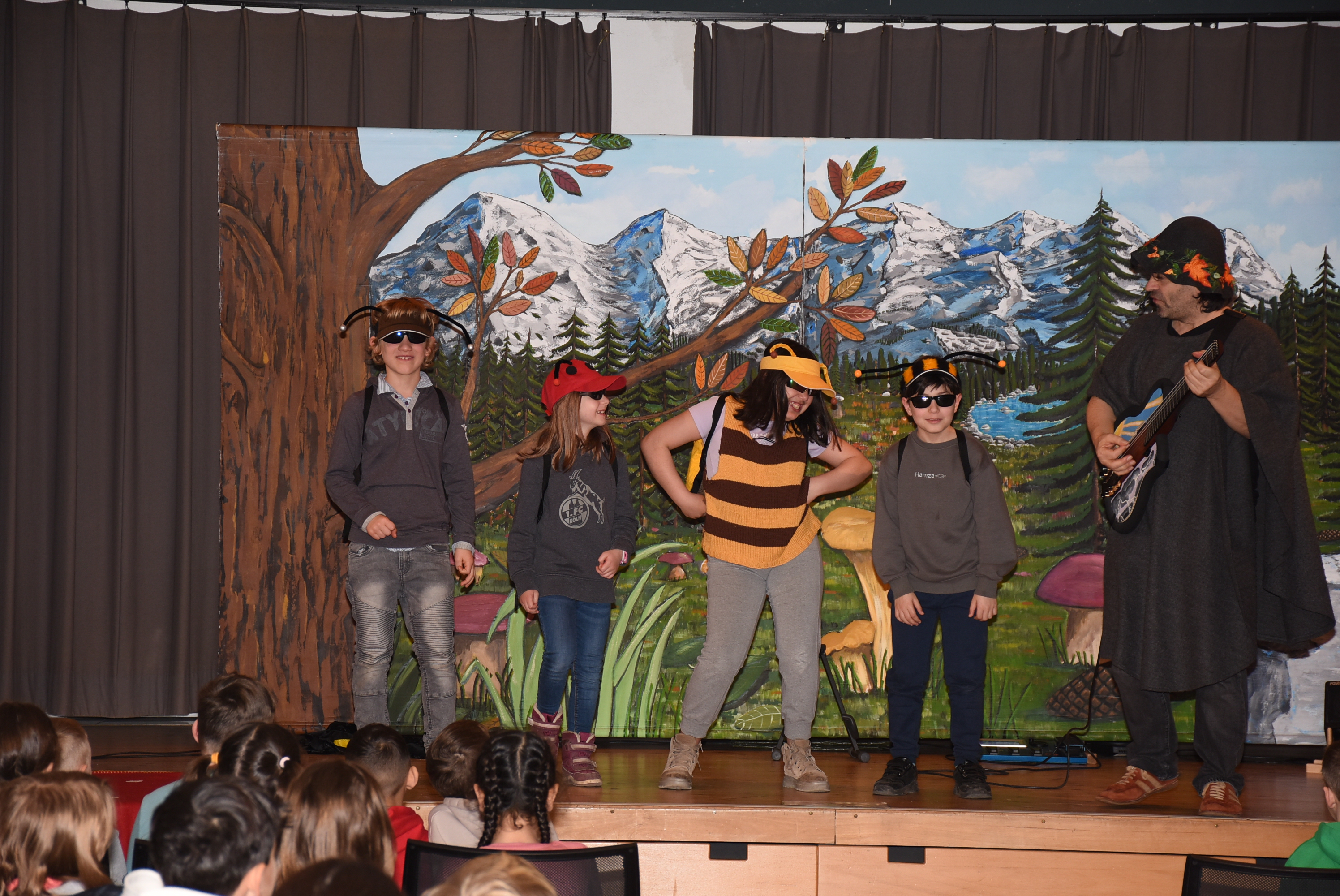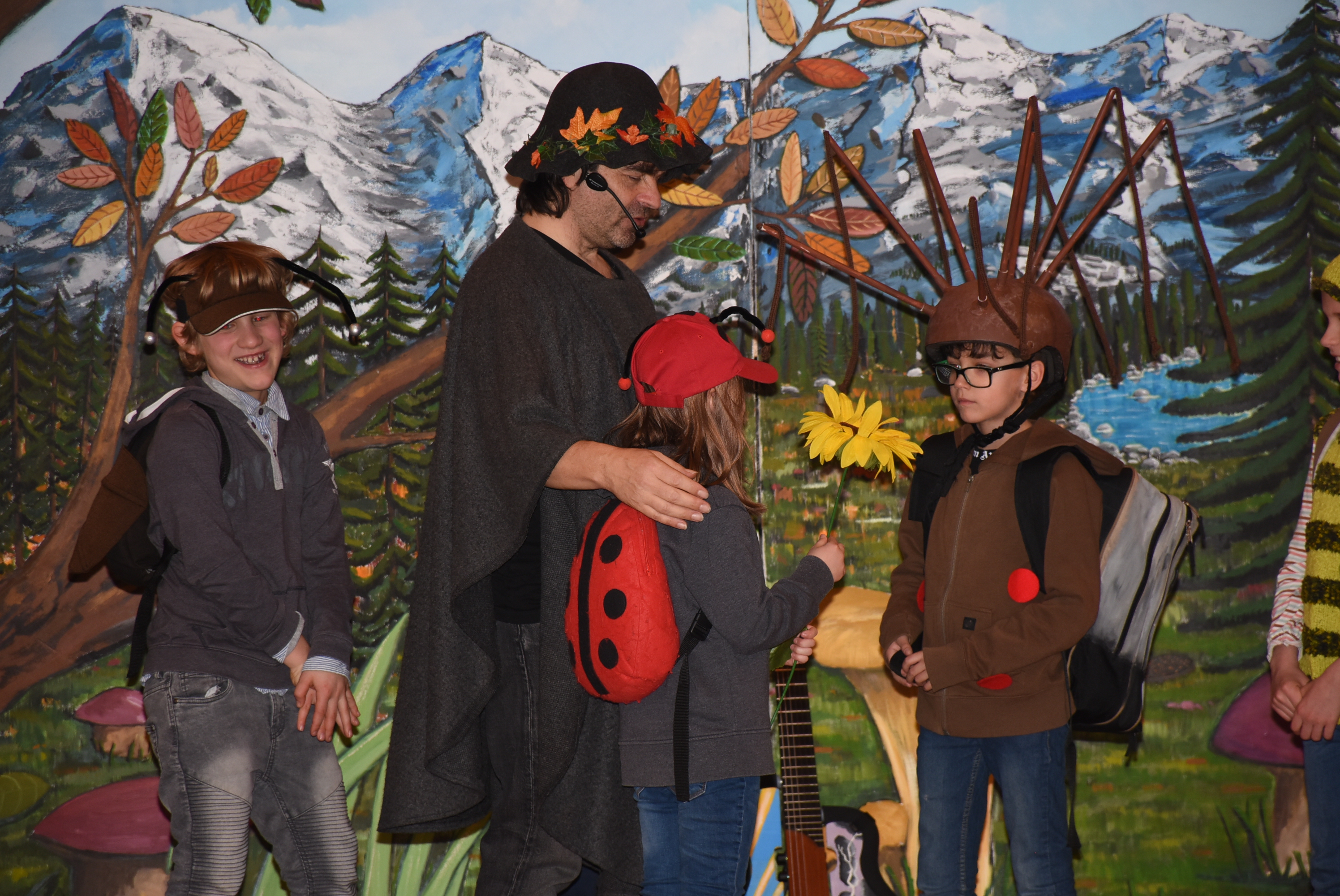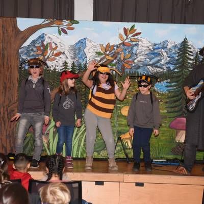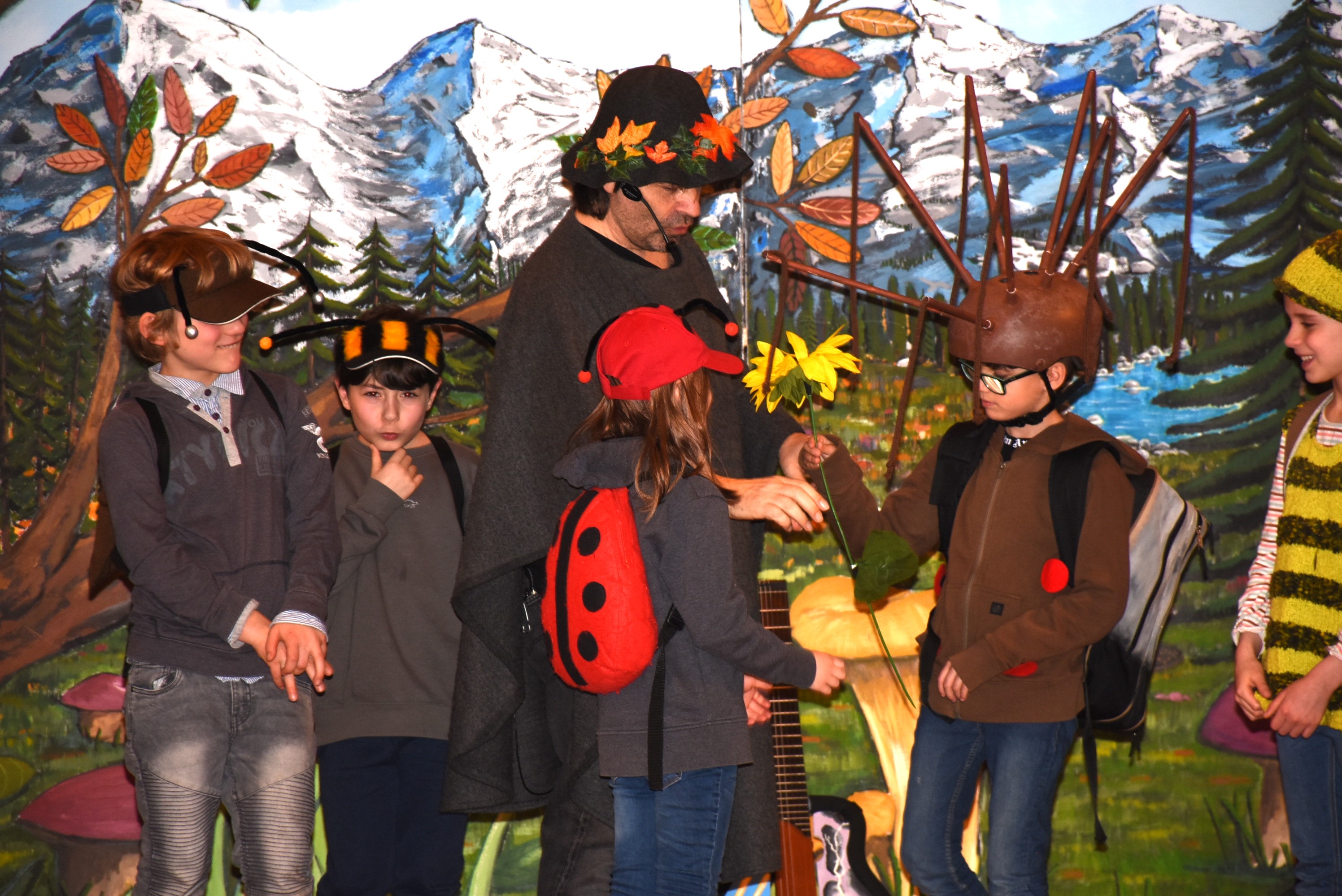 Wie es sich für dieses tolle Mitmachtheater gehört, durften einige Schüler und Schülerinnen wieder auf der Bühne aktiv werden. Bei „Käfer & Co“ füllten die Kinder voller Begeisterung ihre Rollen mithilfe von tollen Kostümen und großem schauspielerischen Talent wunderbar aus.