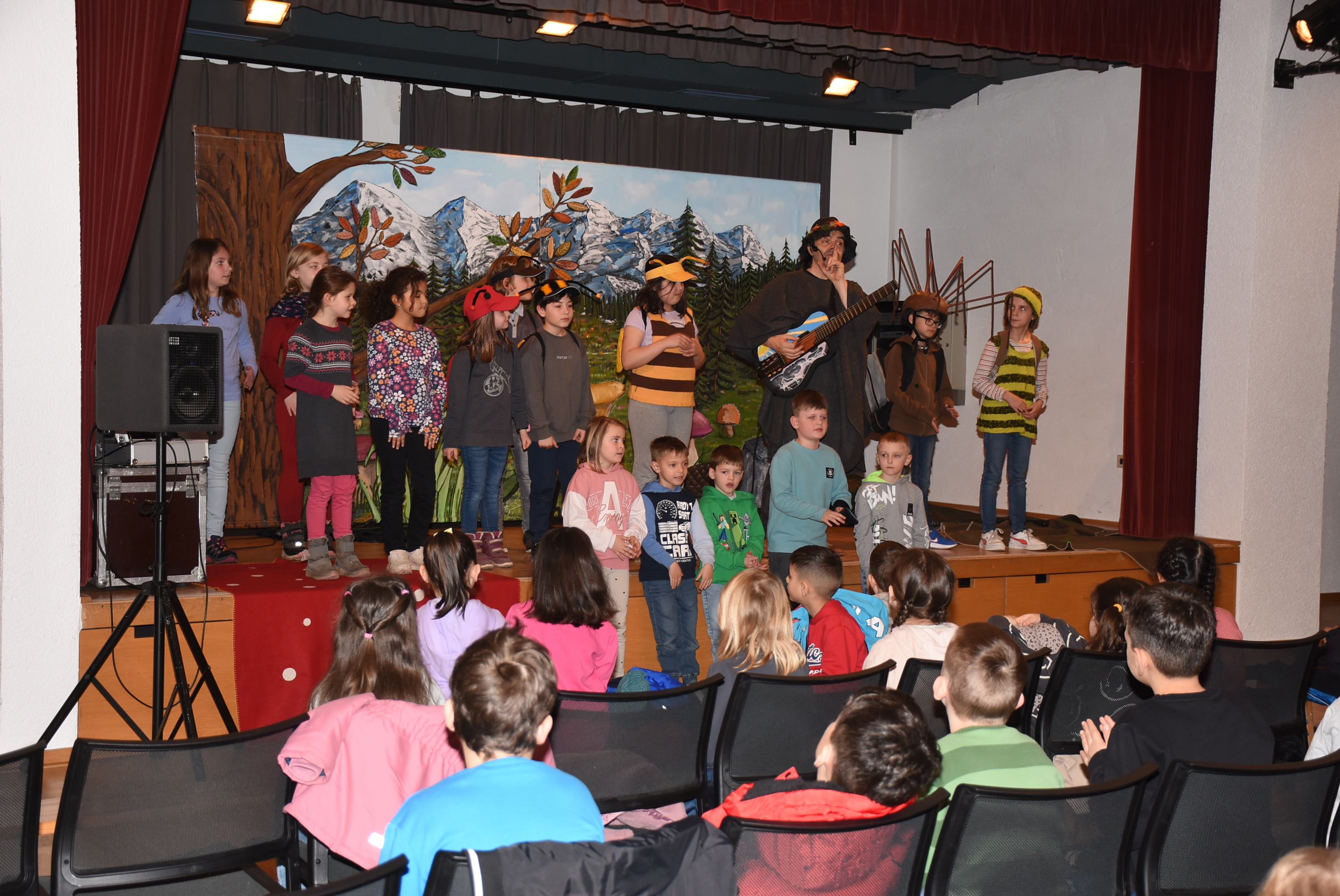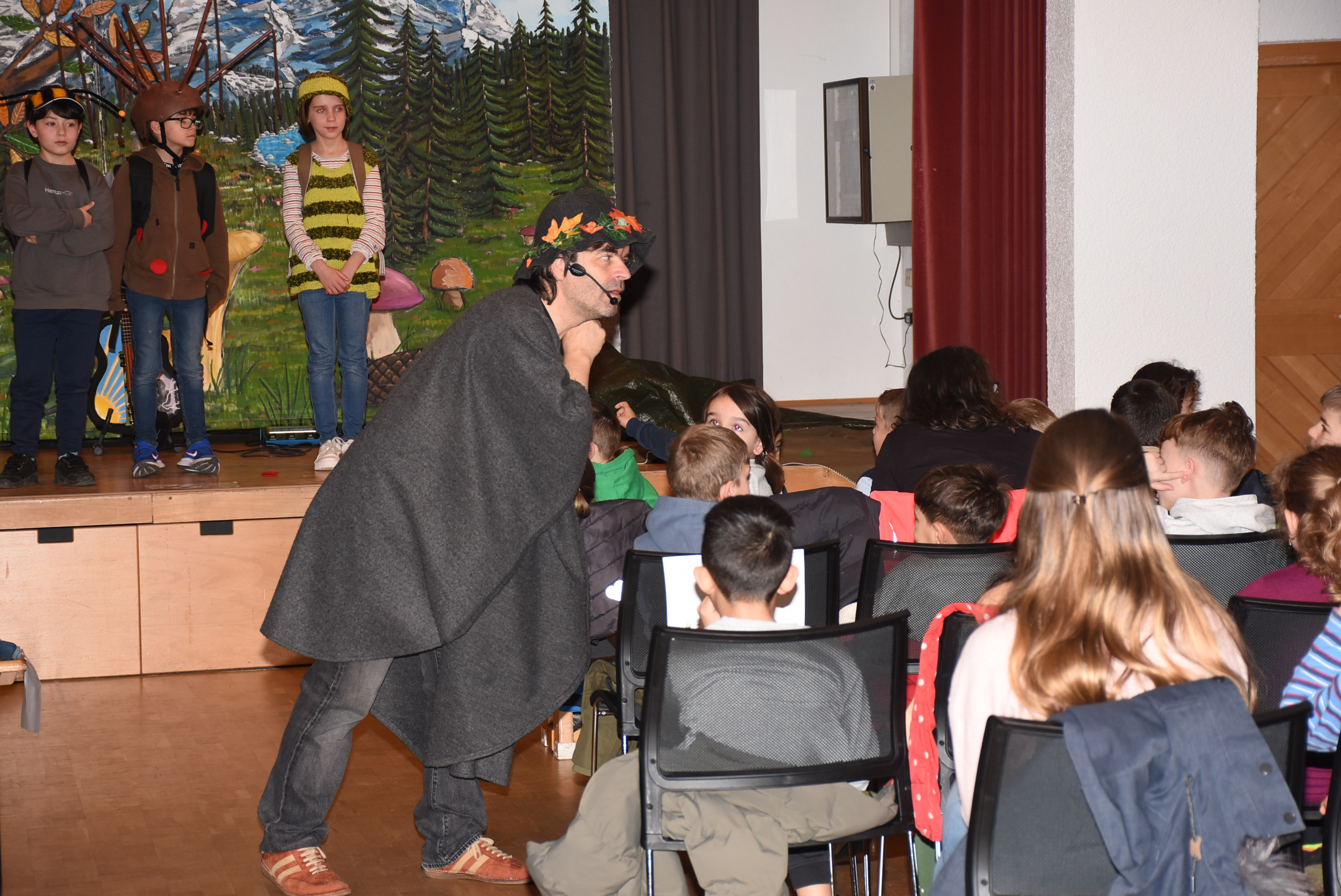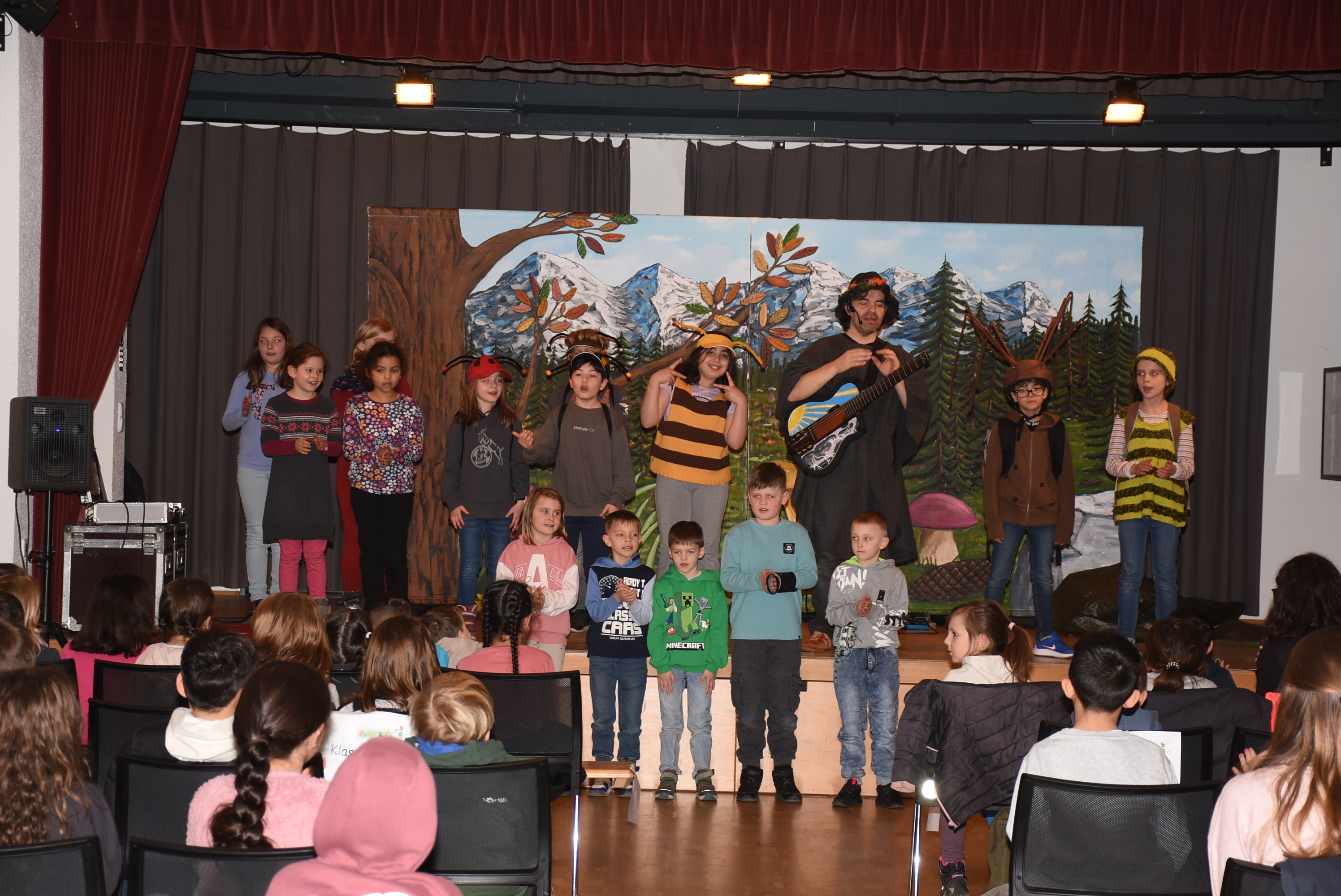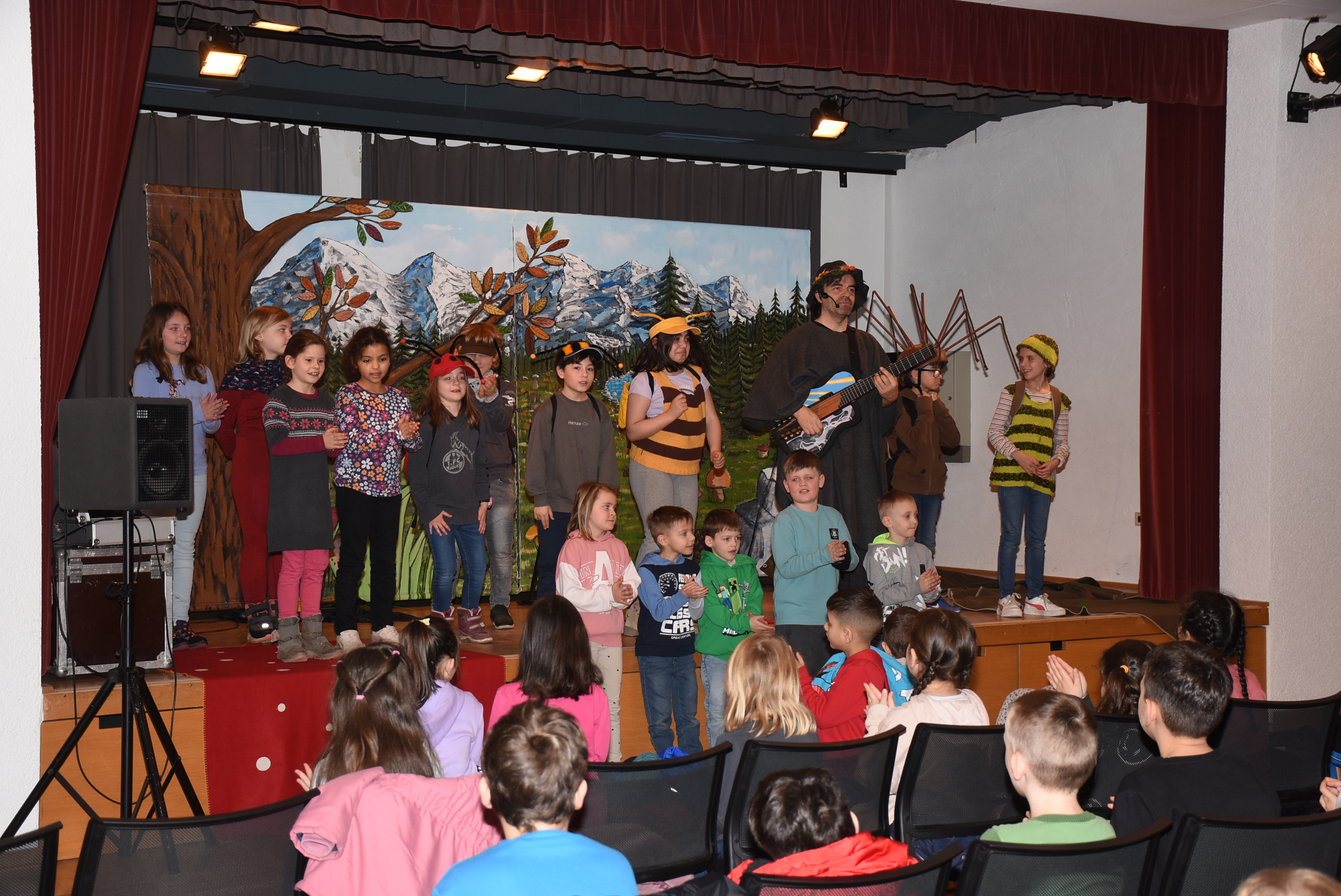 Wie es sich für dieses tolle Mitmachtheater gehört, durften einige Schüler und Schülerinnen wieder auf der Bühne aktiv werden. Bei „Käfer & Co“ füllten die Kinder voller Begeisterung ihre Rollen mithilfe von tollen Kostümen und großem schauspielerischen Talent wunderbar aus.
