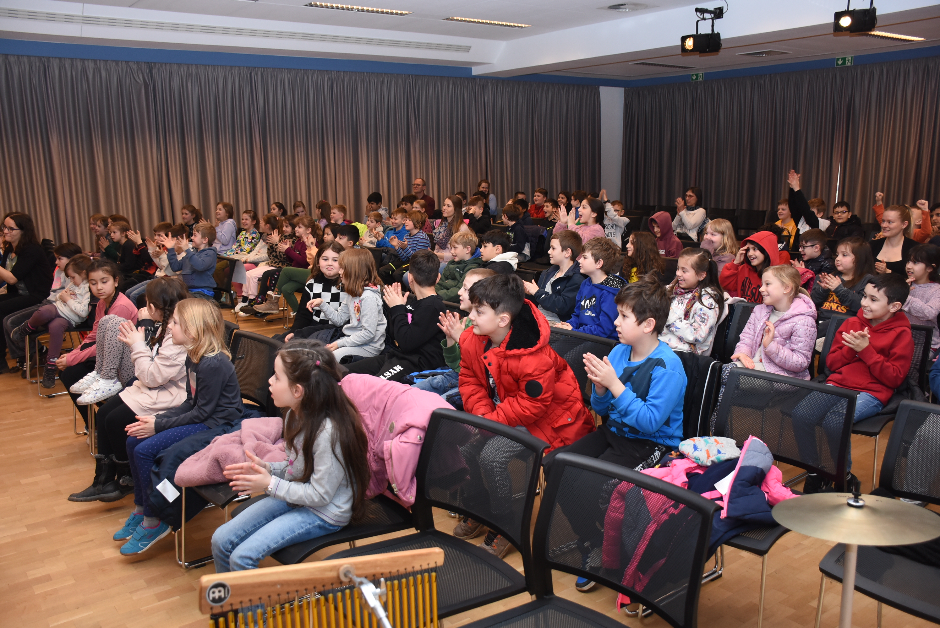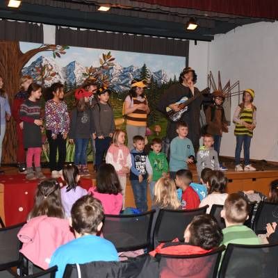 Auch das Publikum wurde immer wieder mit einbezogen. Alle Kinder im Kernersaal sangen und tanzten begeistert die Lieder des Mitmachtheaters mit.