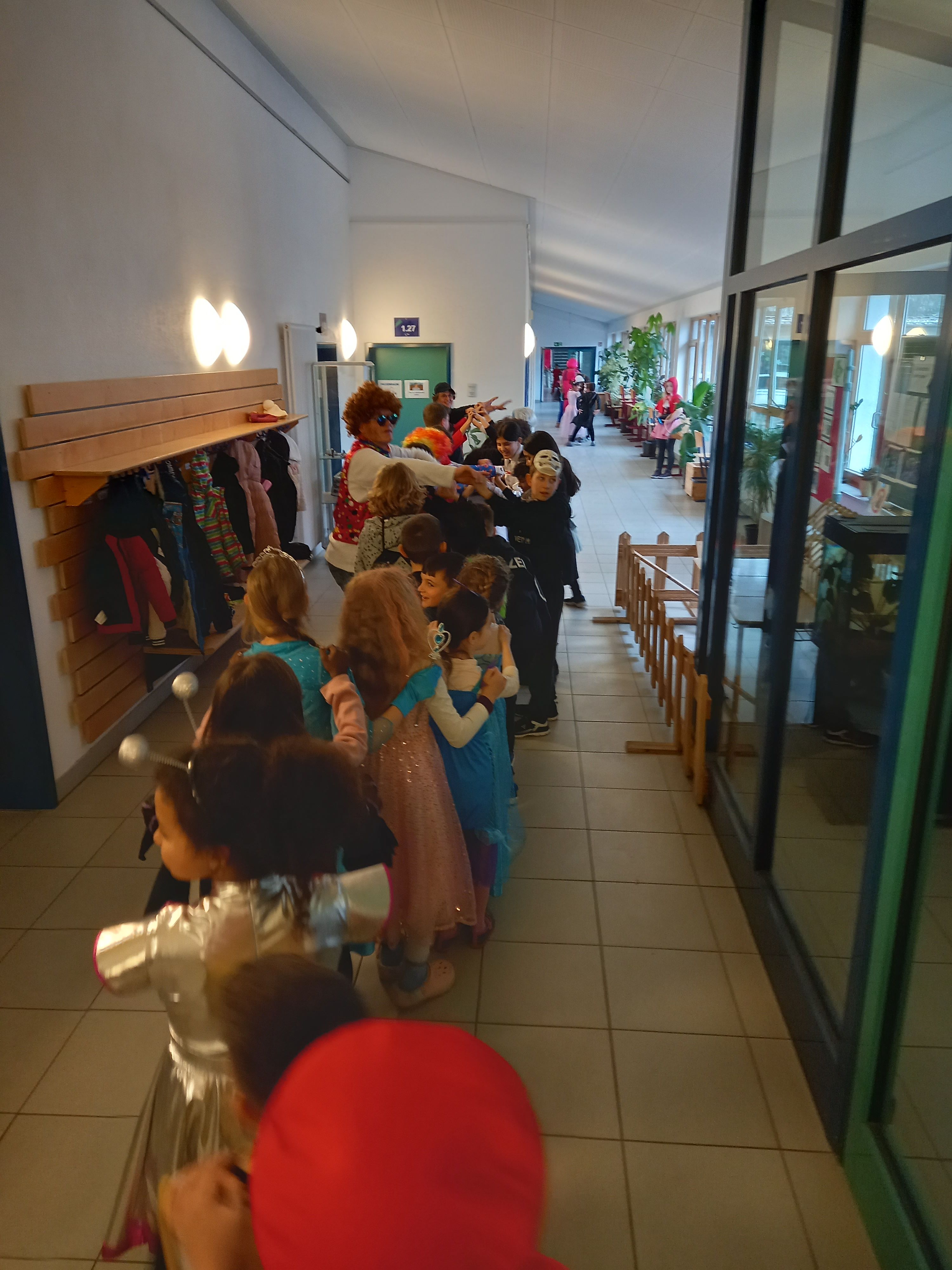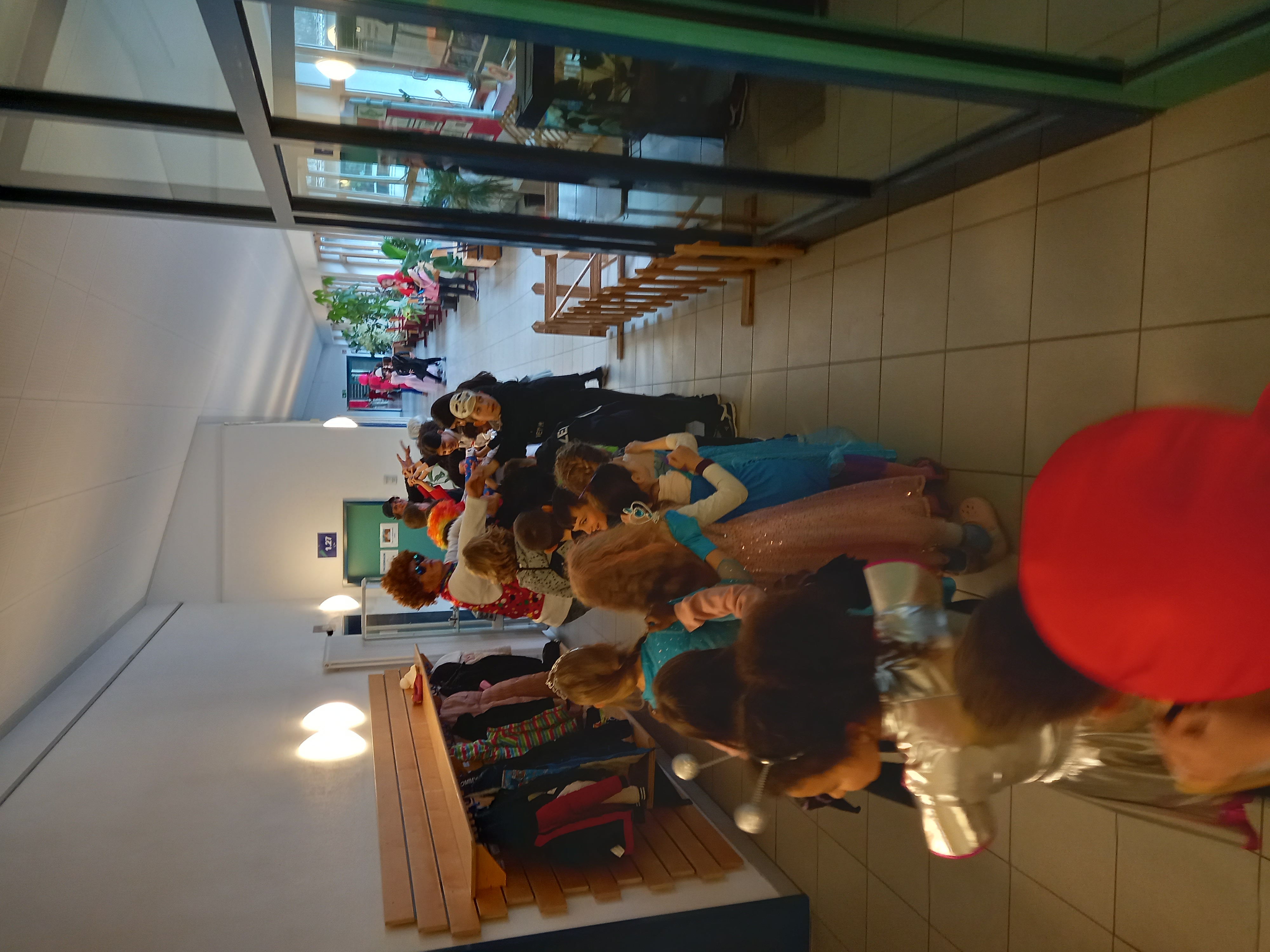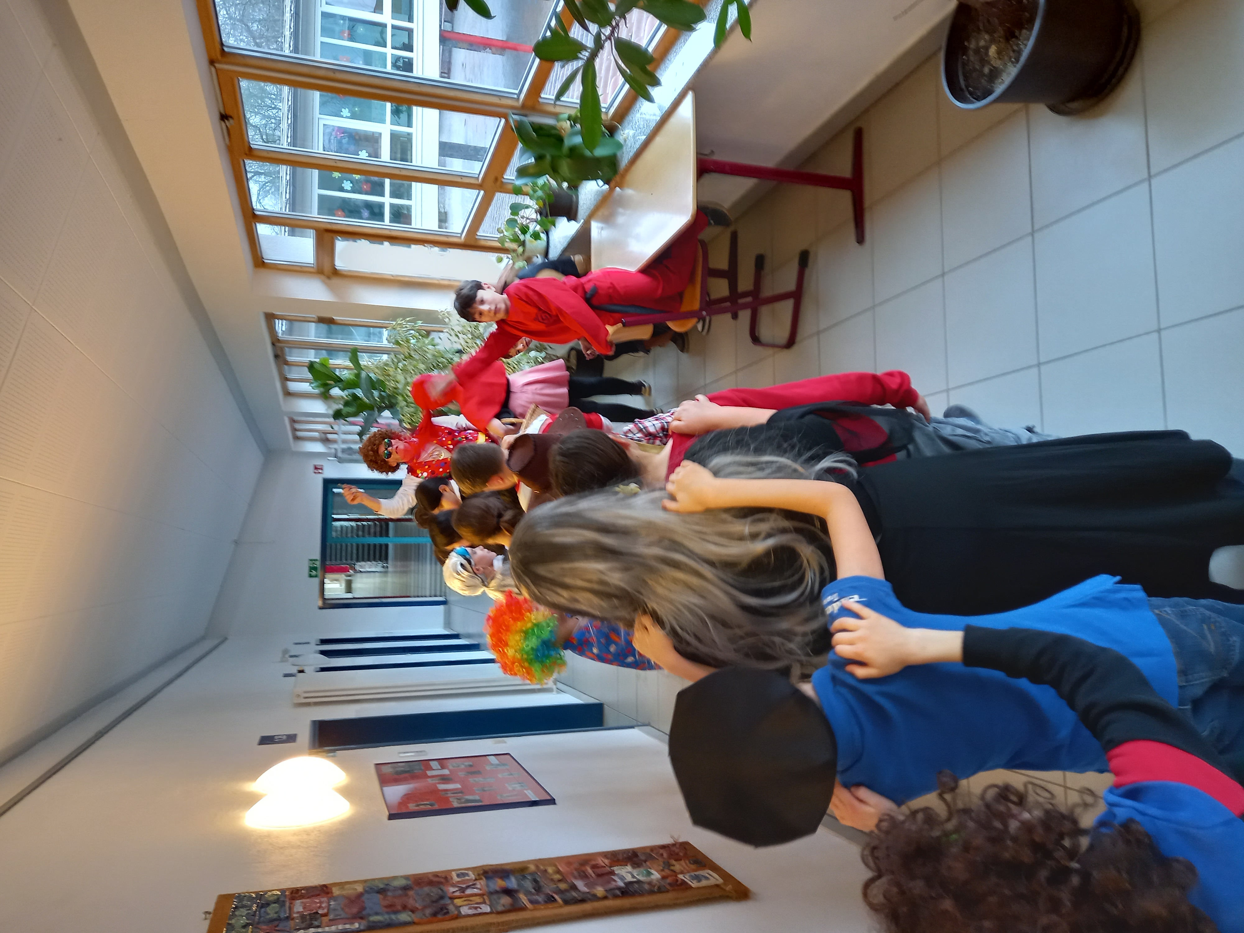 Unsere Grundschulfaschingsfeier war ein großer Erfolg. Die Schulhauspolonaise wurde von allen Teilnehmern und Zuschauern gefeiert!