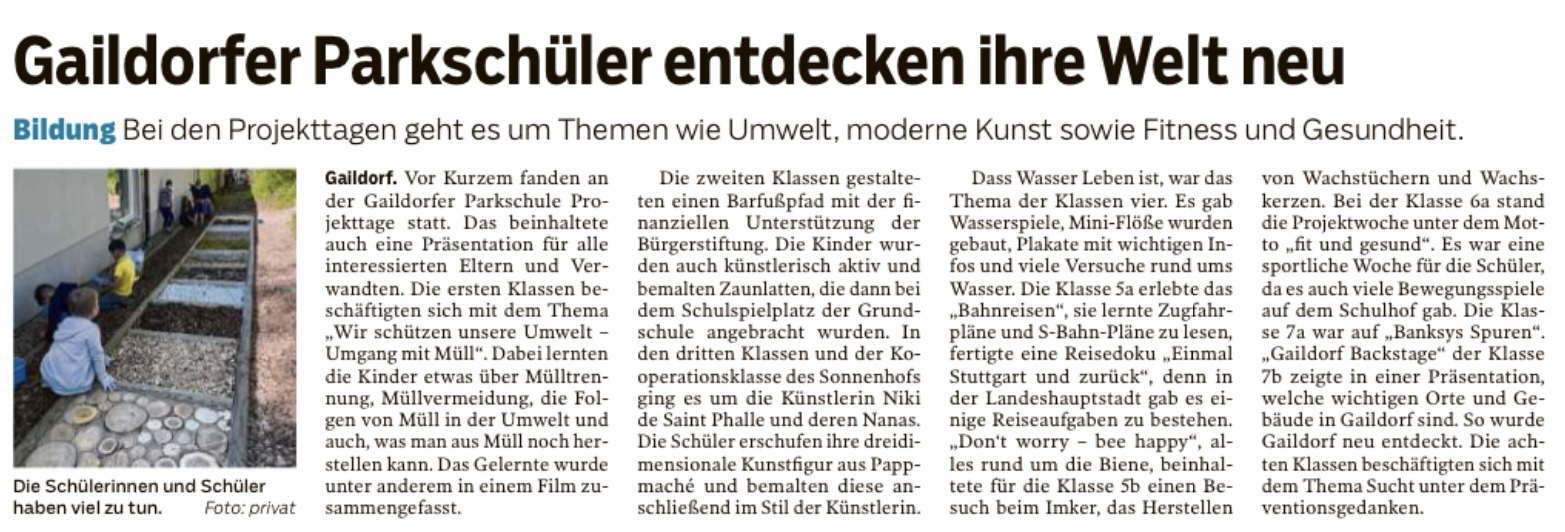 Projekttage an der Parkschule