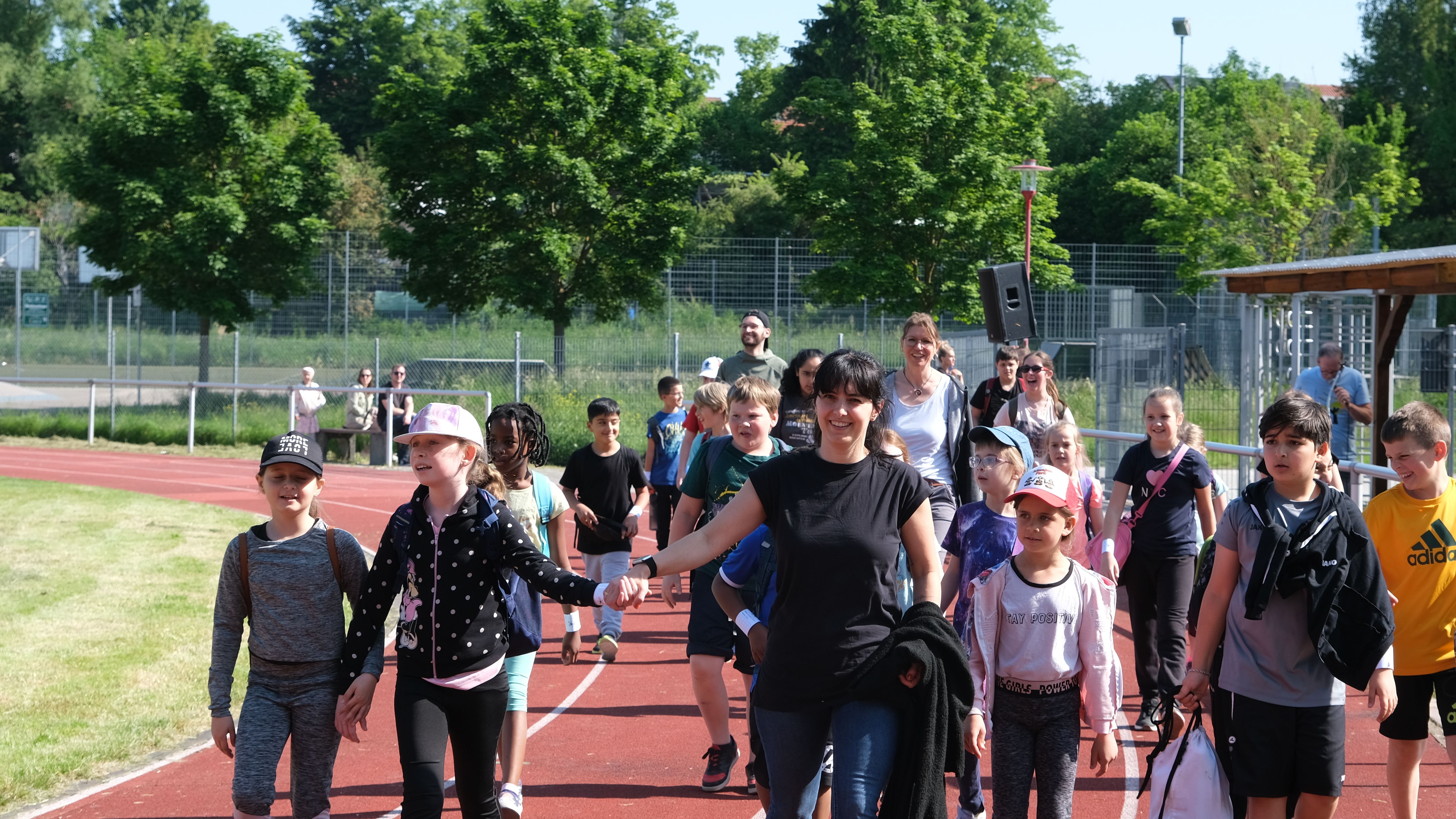 „Es war super anstrengend“, sagten einige Kinder, „aber es hat trotzdem großen Spaß gemacht.“ Und das sportliche Endergebnis konnte sich sehen lassen: insgesamt 1406 Runden oder umgerechnet 562 km liefen die Schüler und Schülerinnen. Unter großem Applaus und mit einem gemeinsamen Abschiedslied „Ferienzeit“ wurden die sportlichen Kids der Parkschule dann in die wohlverdienten Pfingstferien verabschiedet.