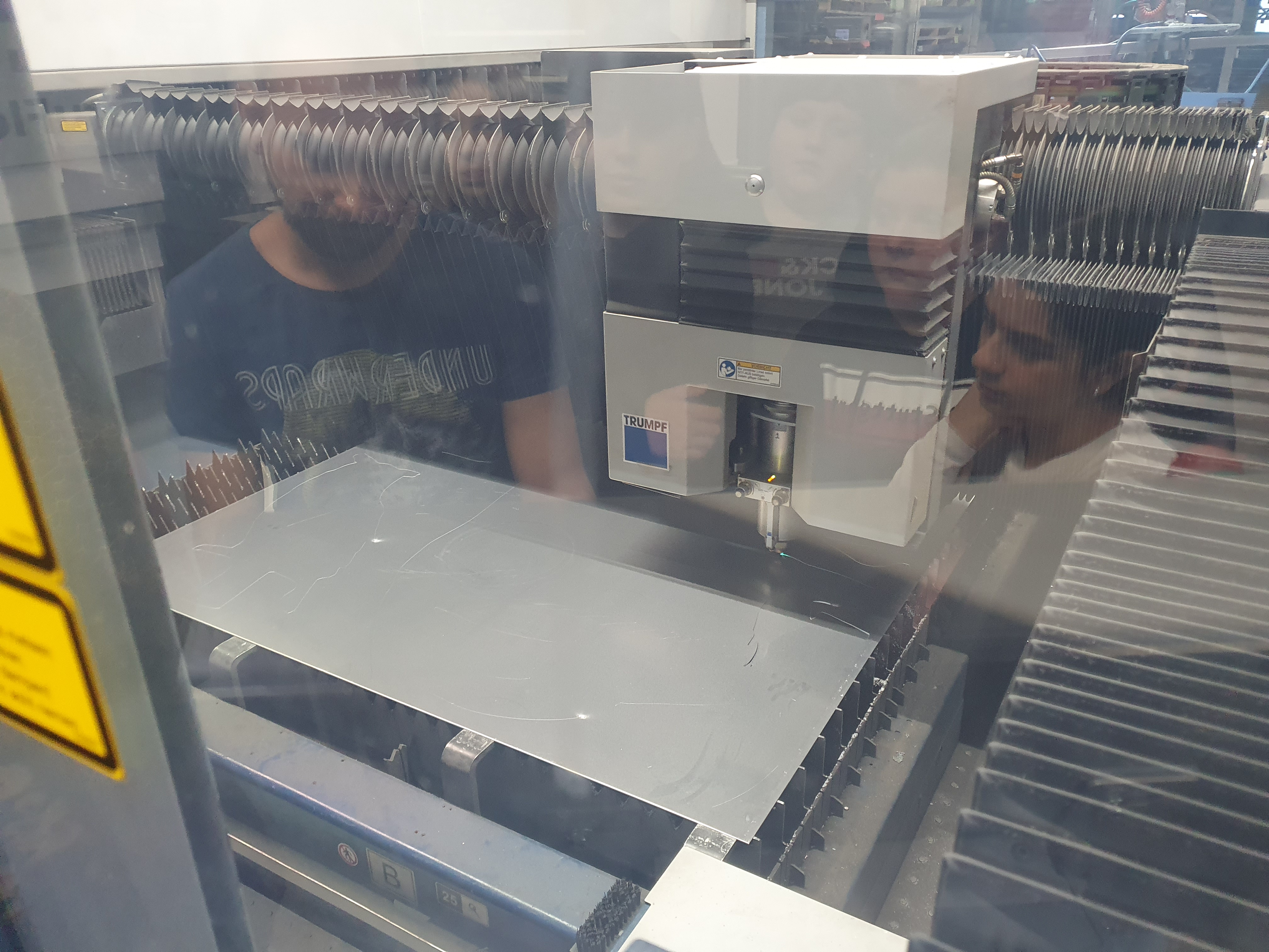 Die SchülerInnen der Schülerfirma der Abteilung Industrie Rommelag lernten das Meisterbüro, die Büros, Abkantmaschinen, Schweißplätze, Entgradungsplätze, Sandstrahlgeräte und die Lasermaschinen kennen, die den SchülerInnen die Waldtiere „live“ ausgelasert hat.