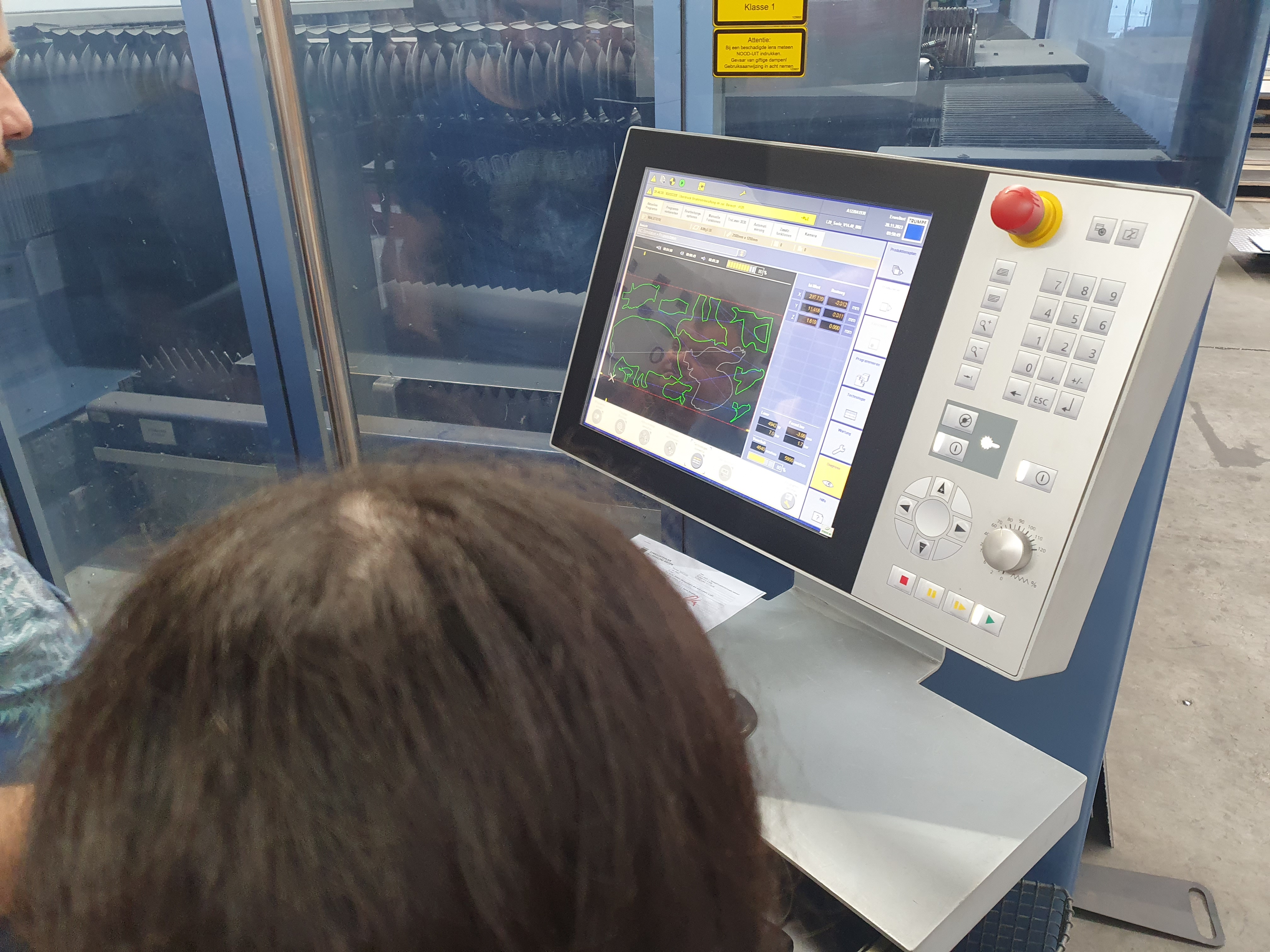 Maik Mehnert zeigte, wie die Datei am Computer mit dem Programm bearbeitet wird. Wie alles auf das Blech platziert wird und an die Maschine geschickt wird. Anschließend rief ein Mitarbeiter das Programm auf, das Blech wurde eingelegt und die Maschine begann das Waldtier auszulasern.