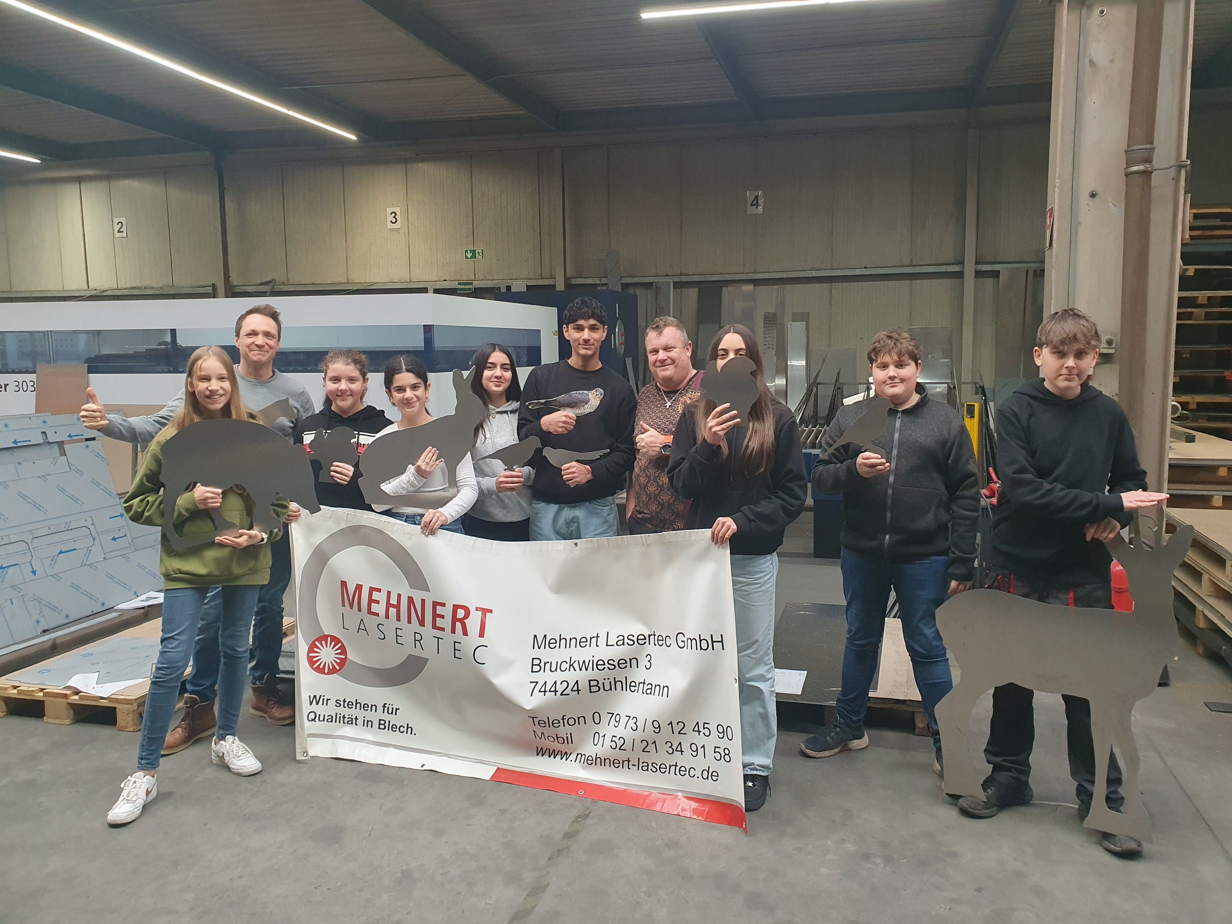 Im Rahmen des Projekts „Waldtiere“ fand eine Betriebserkundung am 28.11.2023 bei der Firma Lasertec GmbH in Bühlertann mit Geschäftsführer Maik Mehnert statt.