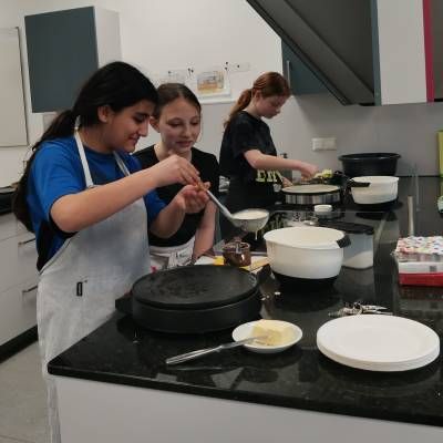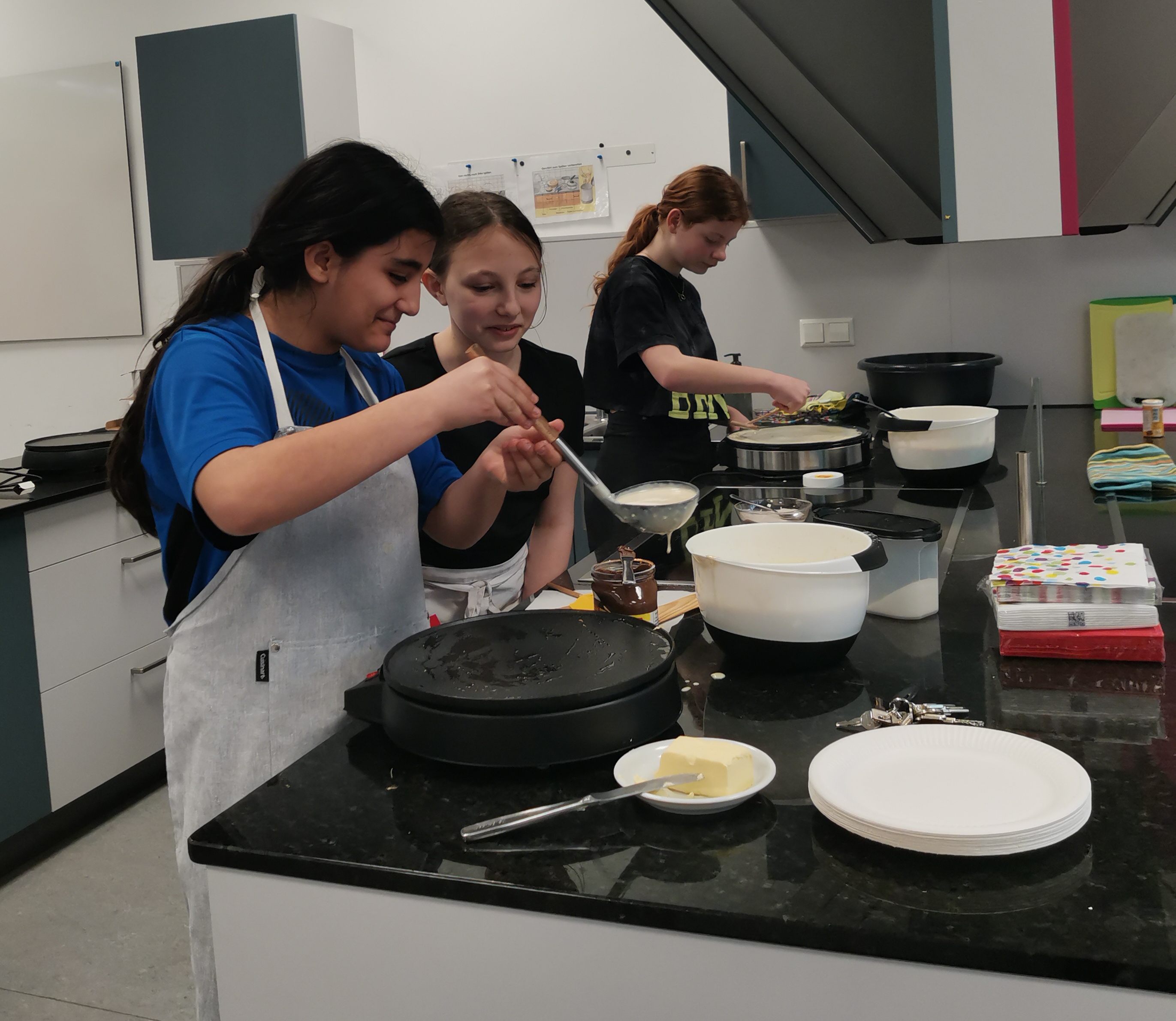 An mehreren Stationen konnten die zukünftigen Fünftklässler die Parkschule kennen lernen. Im Technikraum stellte Jannik Lackner mit den Schülerinnen und Schülern eine Vase aus Holz her. In den Schulküchen wurden unter Leitung von Tatjana Mandara-Barth und ihrem Küchenteam leckere Crepes gebacken. Und im Biologiesaal wurden unter Anleitung von Christina Köngeter Präparate hergestellt und mikroskopiert.