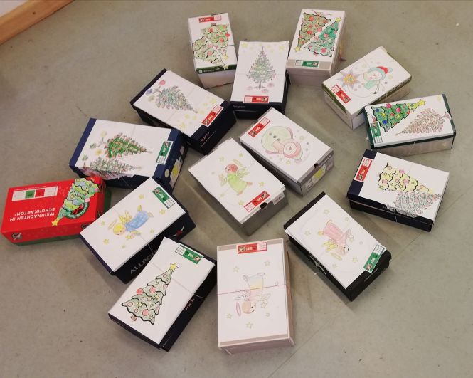 Grundschüler "Weihnachten im Schuhkarton"