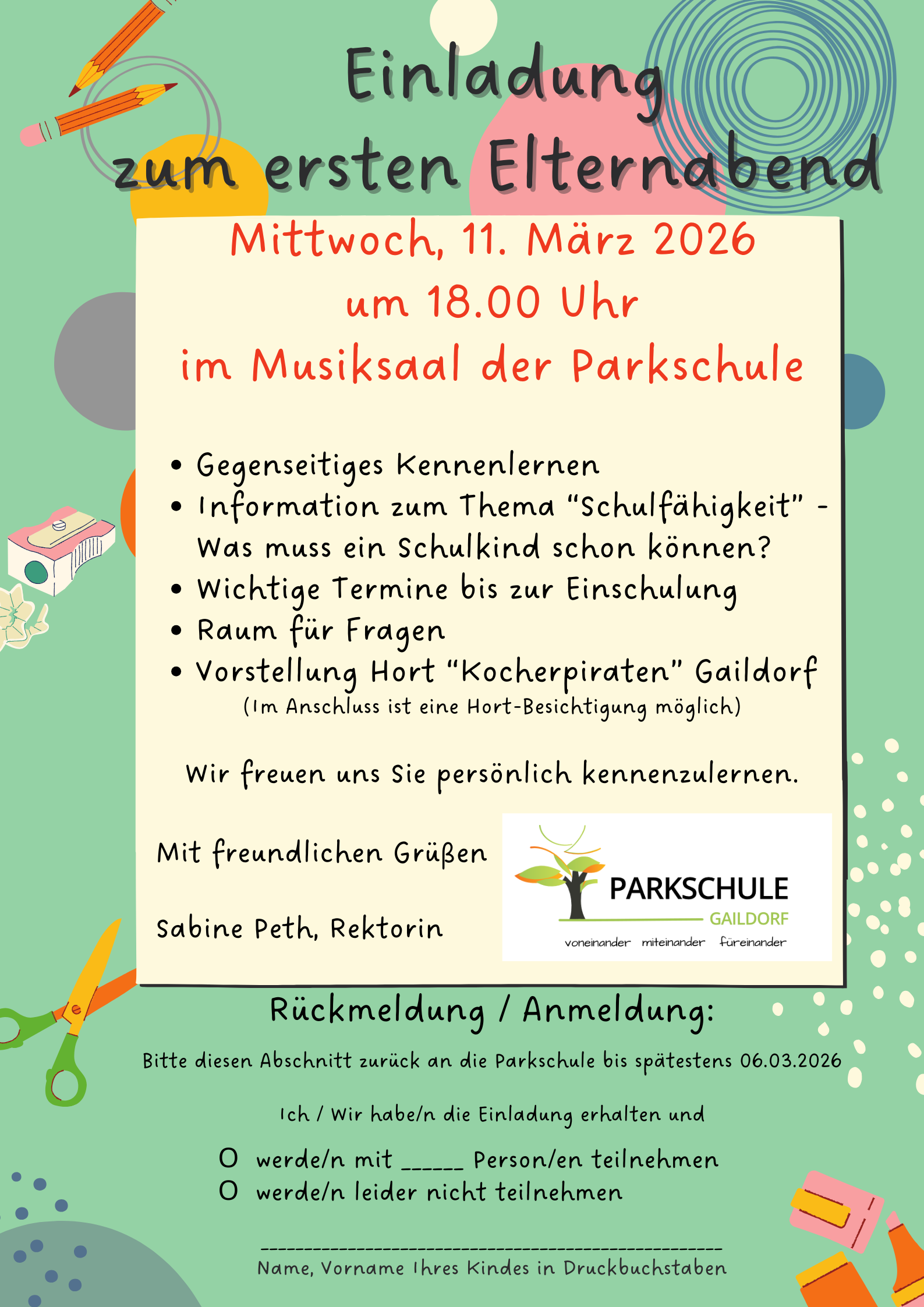 Erster Elternabend und gegenseitiges Kennenlernen um 18.00 Uhr |